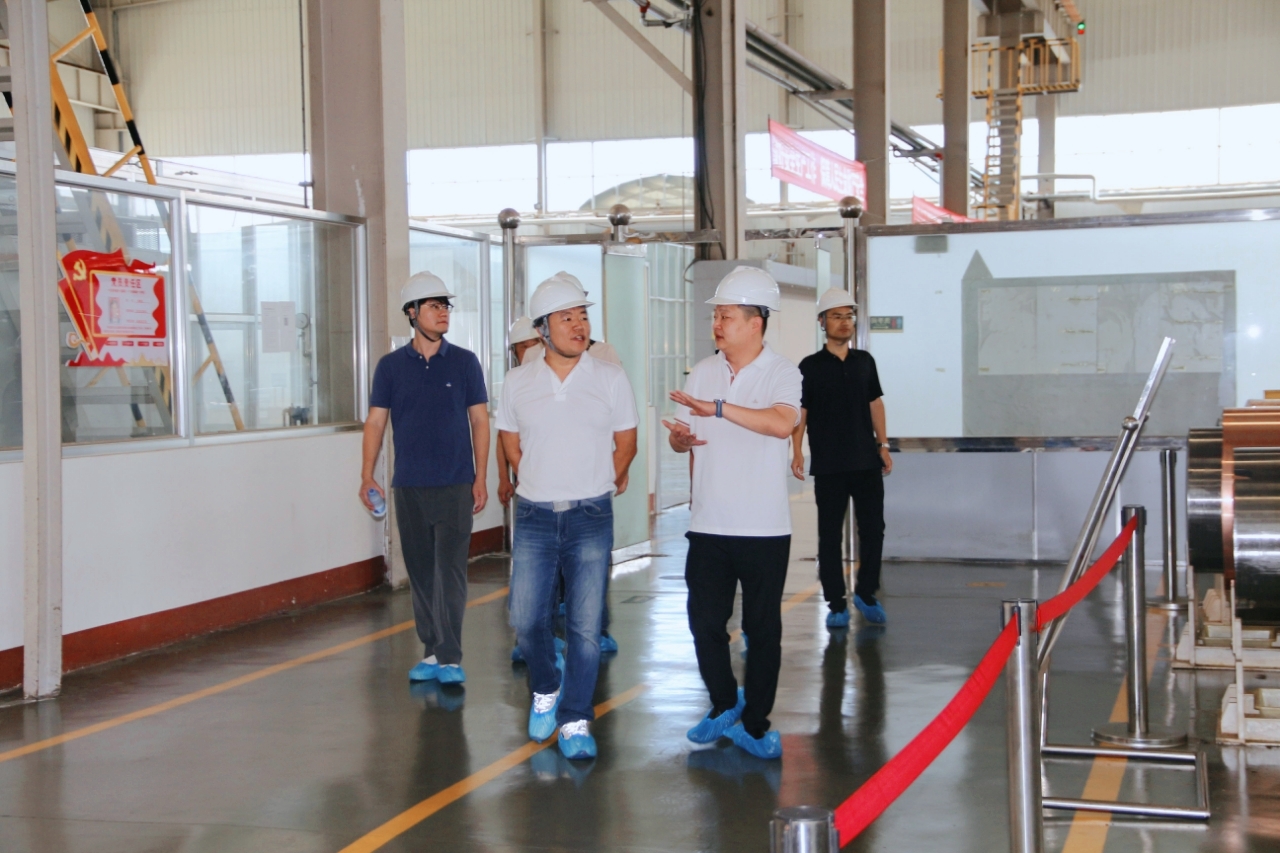 當日,李家慶總經(jīng)理一行先后參觀了天和銅業(yè)銅帶廠區(qū)與銅箔廠區(qū)現(xiàn)代化生產(chǎn)線。在實地考察中,孟祥翼詳細介紹了企業(yè)核心技術(shù)優(yōu)勢、多元化產(chǎn)品體系及行業(yè)領(lǐng)先的市場占有率,并重點展示了天和銅業(yè)在高端銅帶箔研發(fā)、智能制造升級領(lǐng)域的最新成果。李家慶對天和銅業(yè)精益化的生產(chǎn)管理、嚴格的質(zhì)量管控體系給予高度評價,并就壓延銅箔產(chǎn)品在新興領(lǐng)域的應(yīng)用前景與陪同人員展開探討。