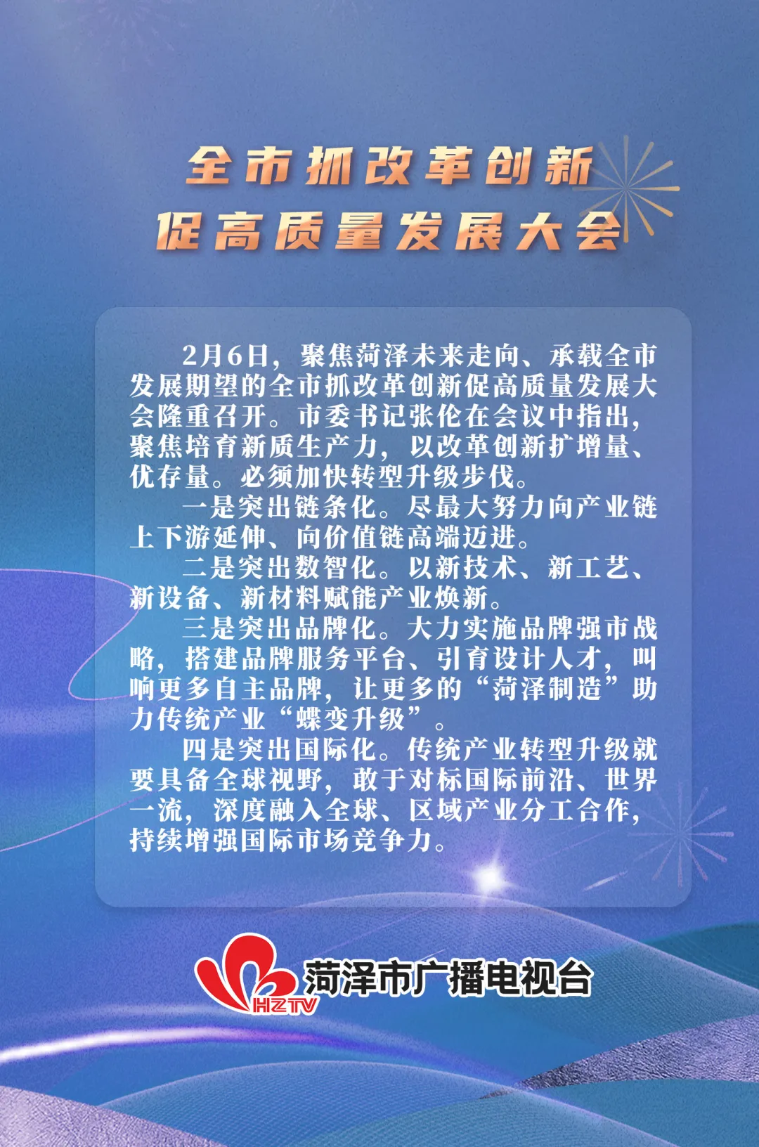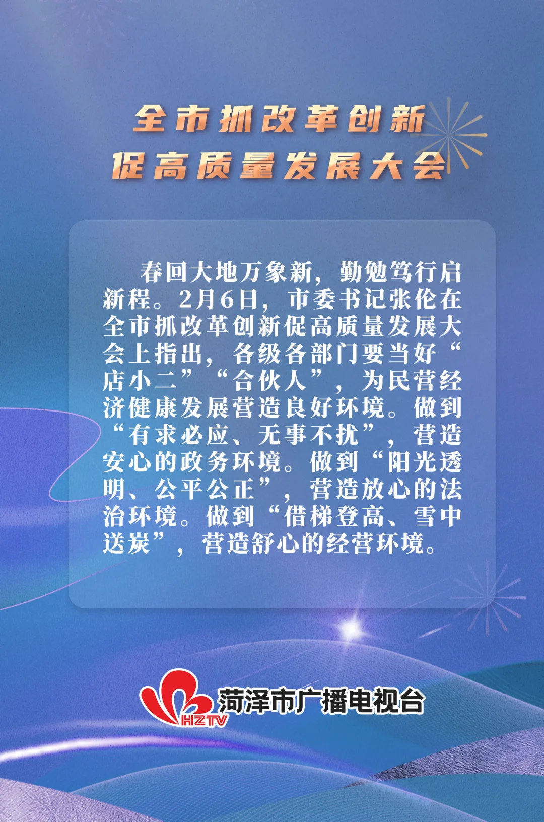 2月6日,全市抓改革創(chuàng)新促高質(zhì)量發(fā)展大會(huì)順利召開(kāi)。市委書(shū)記張倫從強(qiáng)改革創(chuàng)新之志,堅(jiān)定勇闖新路信心決心;謀改革創(chuàng)新之舉,激發(fā)高質(zhì)量發(fā)展動(dòng)力活力;揚(yáng)改革創(chuàng)新之風(fēng),推動(dòng)民營(yíng)經(jīng)濟(jì)做大做強(qiáng);提改革創(chuàng)新之能,爭(zhēng)當(dāng)干事創(chuàng)業(yè)開(kāi)路先鋒四個(gè)方面,對(duì)統(tǒng)籌推進(jìn)各領(lǐng)域各方面改革工作作出具體安排、提出明確要求。