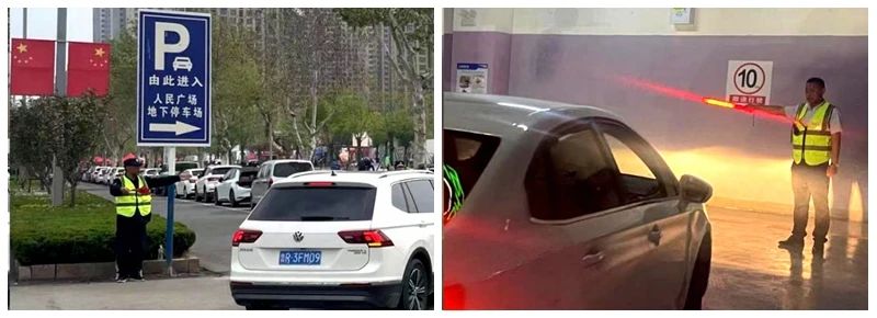 “提供舒適便利的停車服務”。人民廣場項目專門增設大量道路及停車場指示標識,每日30余名引導服務人員不間斷維持交通秩序,從人民路開始,分南北方向,對過往車輛進行指揮分流,對游客車輛進行全程引導,確保游客停車方便,出行順利。