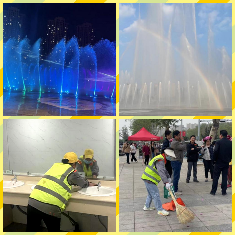 “營造優(yōu)美的人文環(huán)境”。人民廣場項目研究制定標準化、精細化工作流程,對廣場音樂噴泉進行多次調試養(yǎng)護,新增30余首喜慶音樂,每日早、中、晚六個時段開放,每一場都是震撼的視聽盛宴,吸引了眾多來菏游客和本地市民紛紛專程前來觀看、打卡、拍照,為美麗菏澤城新增了一道靚麗風景線。同時,增派40 余名保潔人員,分早中晚班,高頻次、無死角巡回保潔,衛(wèi)生間設專人定點保潔,提供了一個衛(wèi)生整潔的旅游環(huán)境,彰顯菏澤美好城市形象。