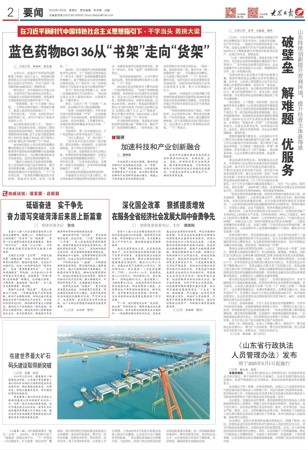 1月3日,《大眾日?qǐng)?bào)》刊發(fā)了菏澤市委書記張倫的署名文章。具體內(nèi)容如下: